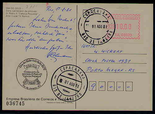 | Brasilien Orts-ATM VA.00003 auf Beleg aus der Korrespondenz Wolfdietrich Wickert / Hans Lehmann. |